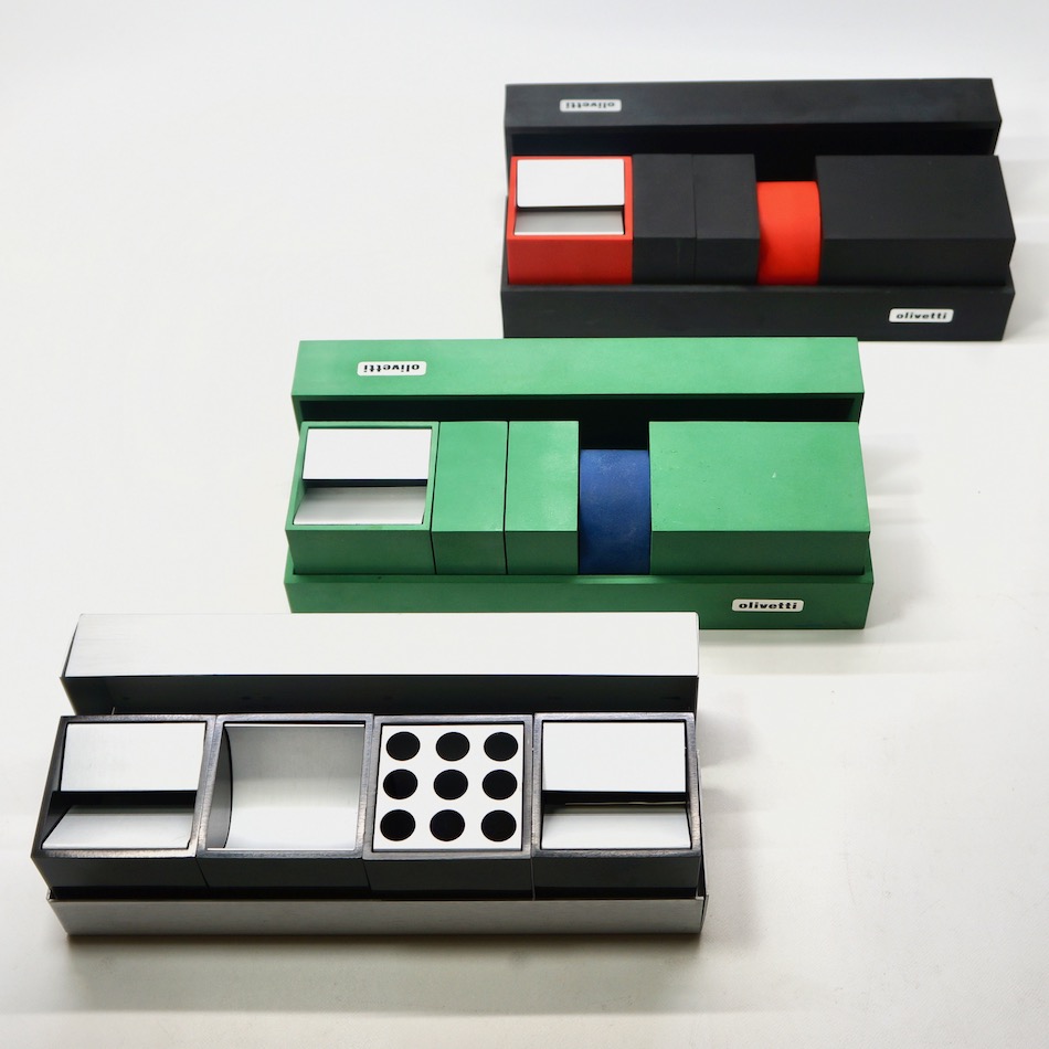 1950年代、イタリア “Olivetti/オリベッティ社” のノベルティとして”Bruno Munari/ブルーノ・ムナーリ” がデザインしたデスクセット 。製造は “DANESE/ダネーゼ” 。