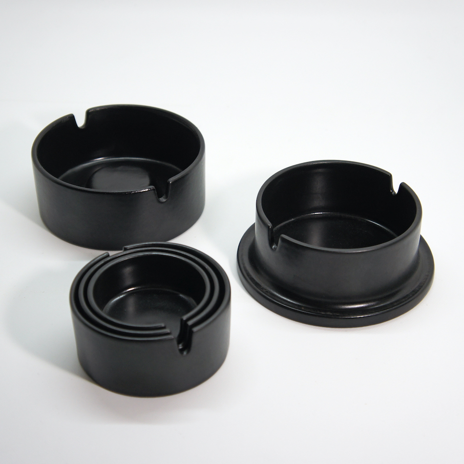 5つのトレイが、入れ子のように収まり綺麗に1つに収納されるユニークな仕様。中に納まる3つだけでなく、上蓋、ホルダーもすべてアッシュトレイとして使え、機能とデザインを「納まり」という観点で完成させた美しいプロダクトデザイン。<br>