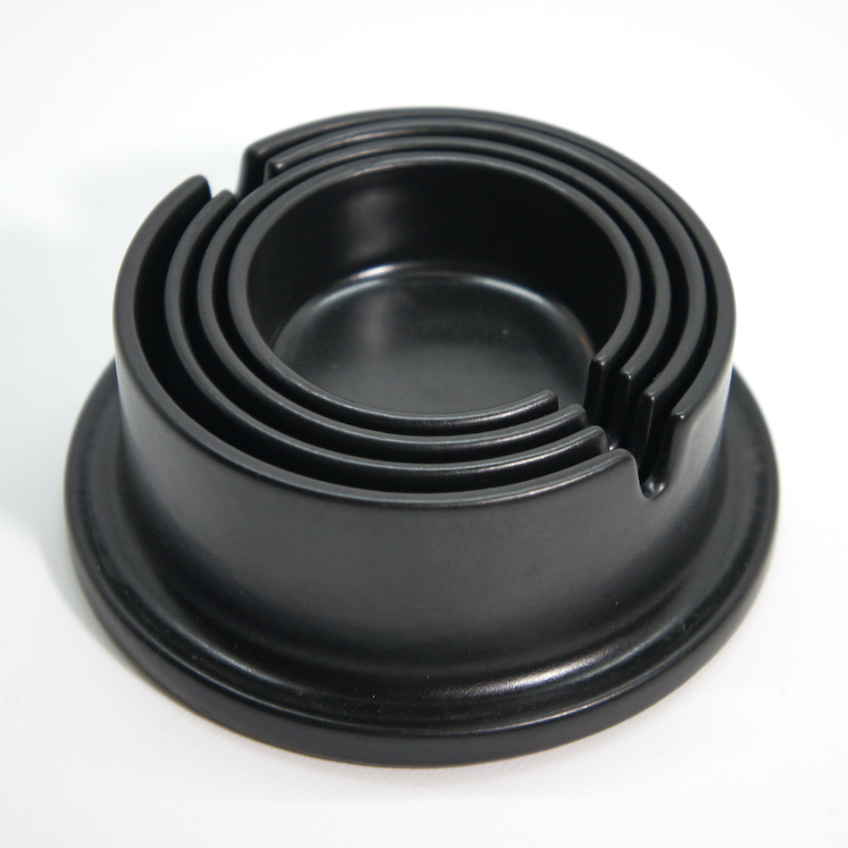 “Rosentahal / ローゼンタール”や”Guzzini / グッチーニ”へのデザイン提供や、”Joe Colombo/ジョエ・コロンボ”との仕事でも知られるプロダクトデザイナー”Ambrogio Pozzi / アンブロジオ・ポッジ”が、実の父親が経営する陶器メーカー”Ceramica Franco Pozzi / セラミカ・フランコ・ポッジ”のためにデザインしたネスティングアッシュトレイ。<br>