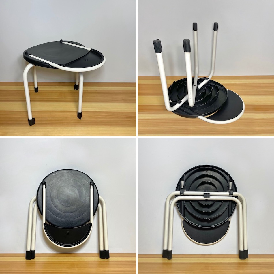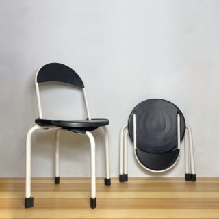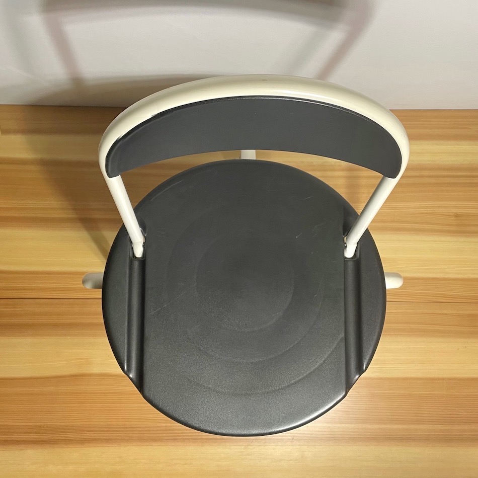 「機能面から新しい形を生み出す」と語る二人のデザイン姿勢が生み出した「Clark 」は87年の「コンパッソ・ドーロ賞」も受賞、デザインと格納性をカタチに落とし込んだバランスが評価された80sらしいユニークでファンクショナルなチェアです。