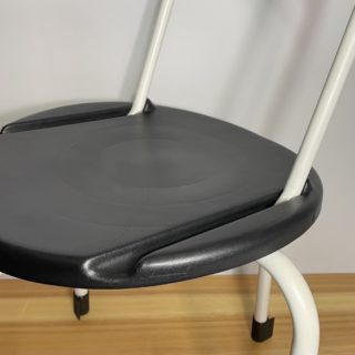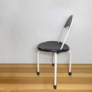 4本のスチールレッグ、半円の背板を持つバックアーチに円形のポリプロピレンシートで構成したポストモダニズム志向のフォルム。