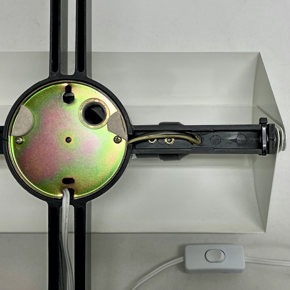※壁面工事の必要なウォールランプですが、フックに掛けて工事不要でこのまま使用できるよう背面金具の加工とスイッチ付コードを配線してあります。また、一点の樹脂フレーム右にクラックが有りインシュロックで留めていますが使用には全く差し支えありません。