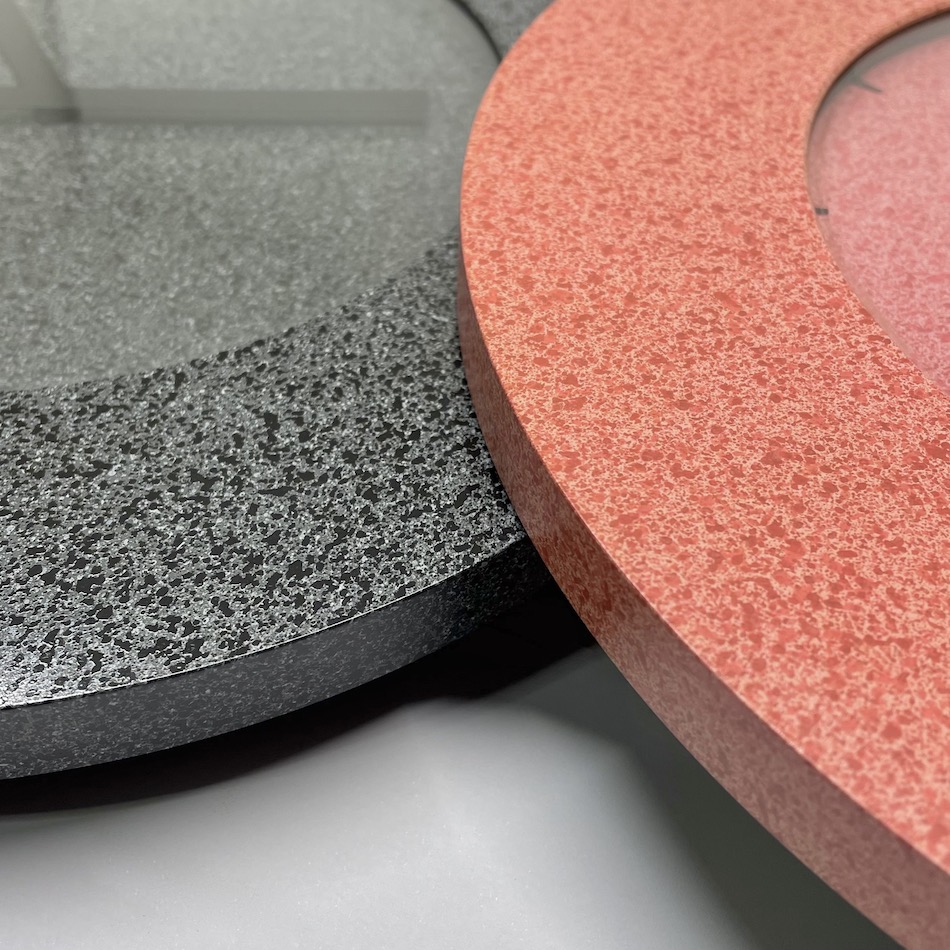 「PEBBLE = 丸い小石」の名のとおり、ストーン調ペイントが特徴のグレーカラー/ピンクカラーの2点、ともに当時のオリジナル。