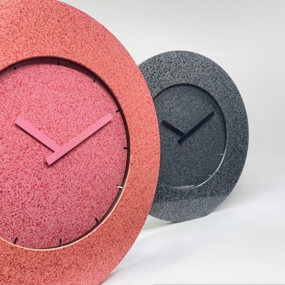 プロダクトデザイナー”川崎和男” がデザインした”GANBARA”の「PEBBLE”ILUS」ウォールクロック(グレーとピンク)