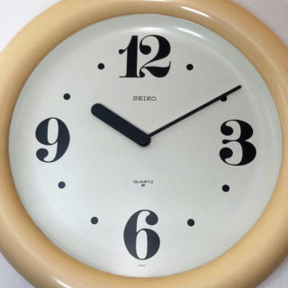 1970年代、ビジュアルデザイナー”馬場雄二”がインデックスフォントデザインを担当した”SEIKO”のウォールクロック。