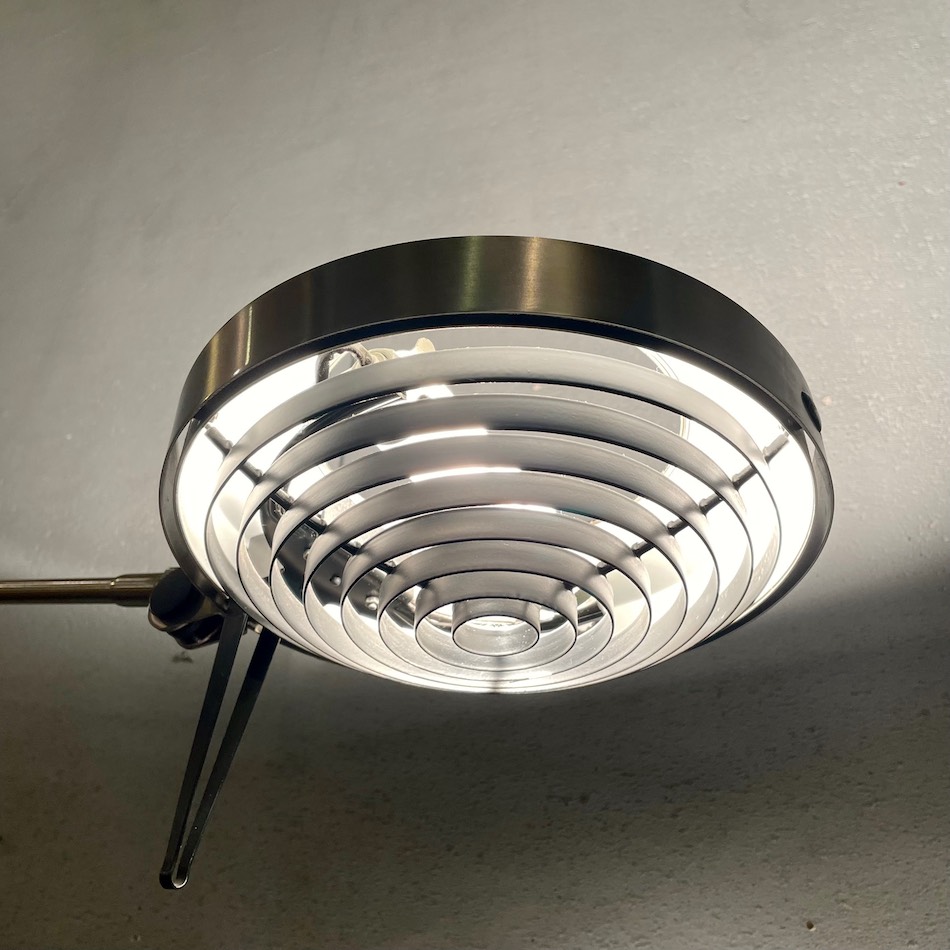 2m近いスタンドシャフトと約1mのアームの先端にルーバー状の丸いシェードを備えた驚くほどのロングトールルックス。