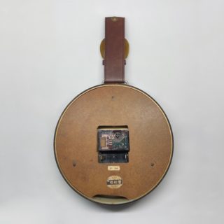 メタルとレザーのハッキリした輪郭が壁面をシックに引き締めるビンテージクロックです。