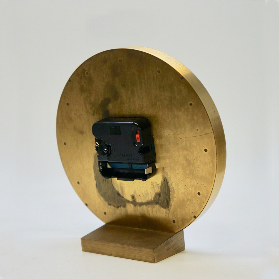 ソリッドブラス製の円形ケース、台座、インデックス、裏蓋まで全てソリッドブラスで構成し、ホワイトの文字盤には12星座のイメージをゴールドでプリント。