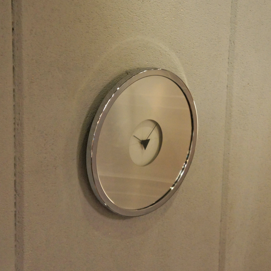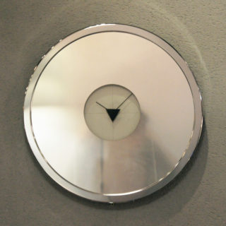 メーカーやデザイナーは不明、視認性も決して良いとは言えませんが、「カッコ良さ」を最優先した当時の世相を映し出したデザインクロックです。