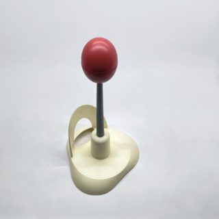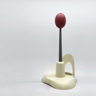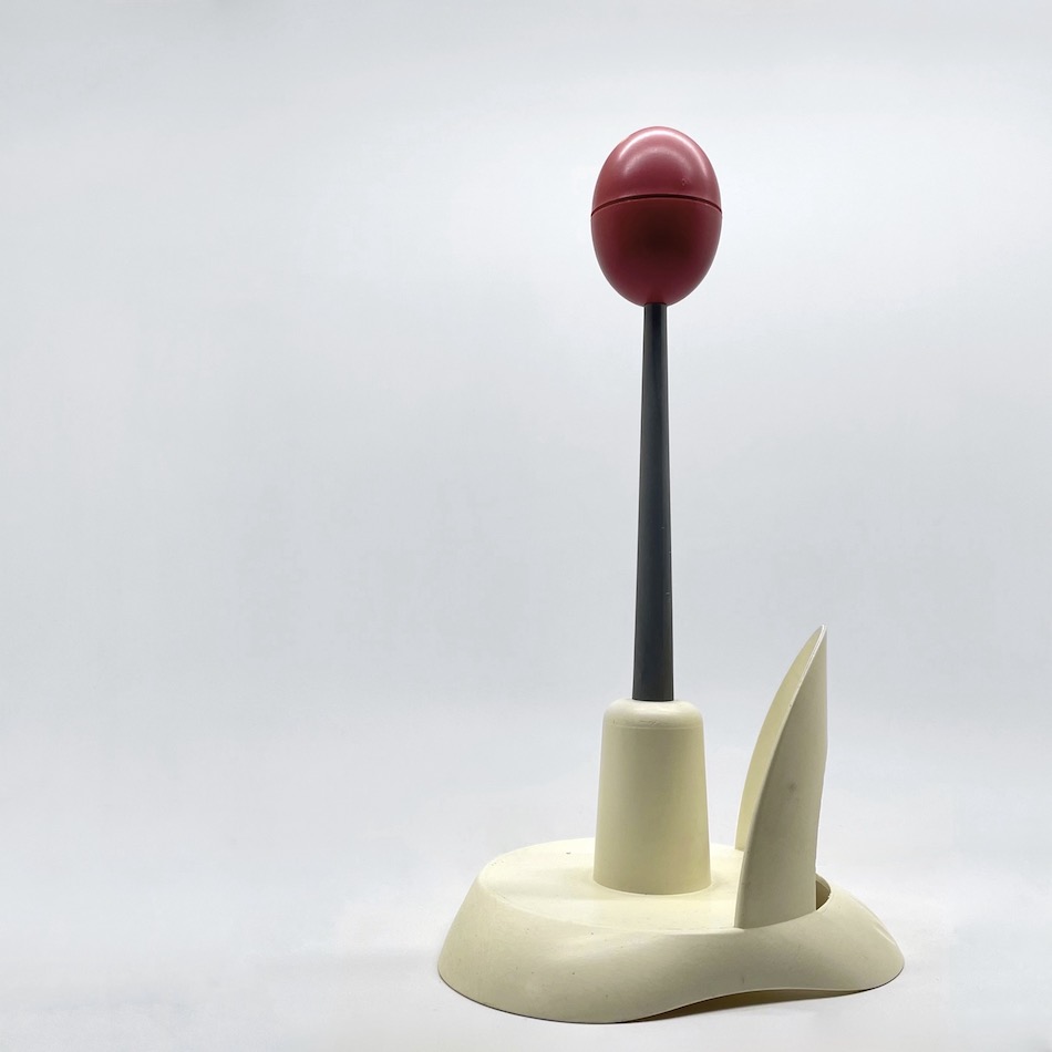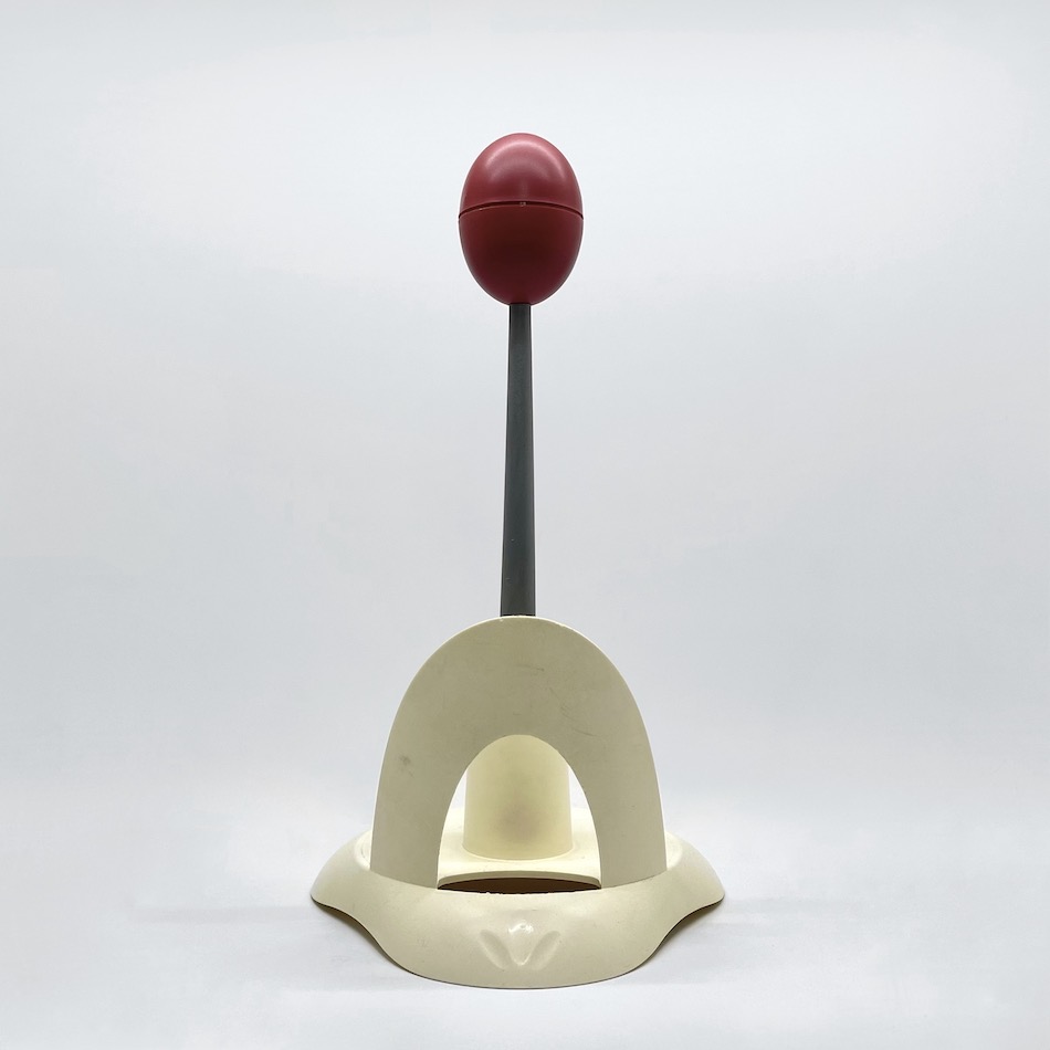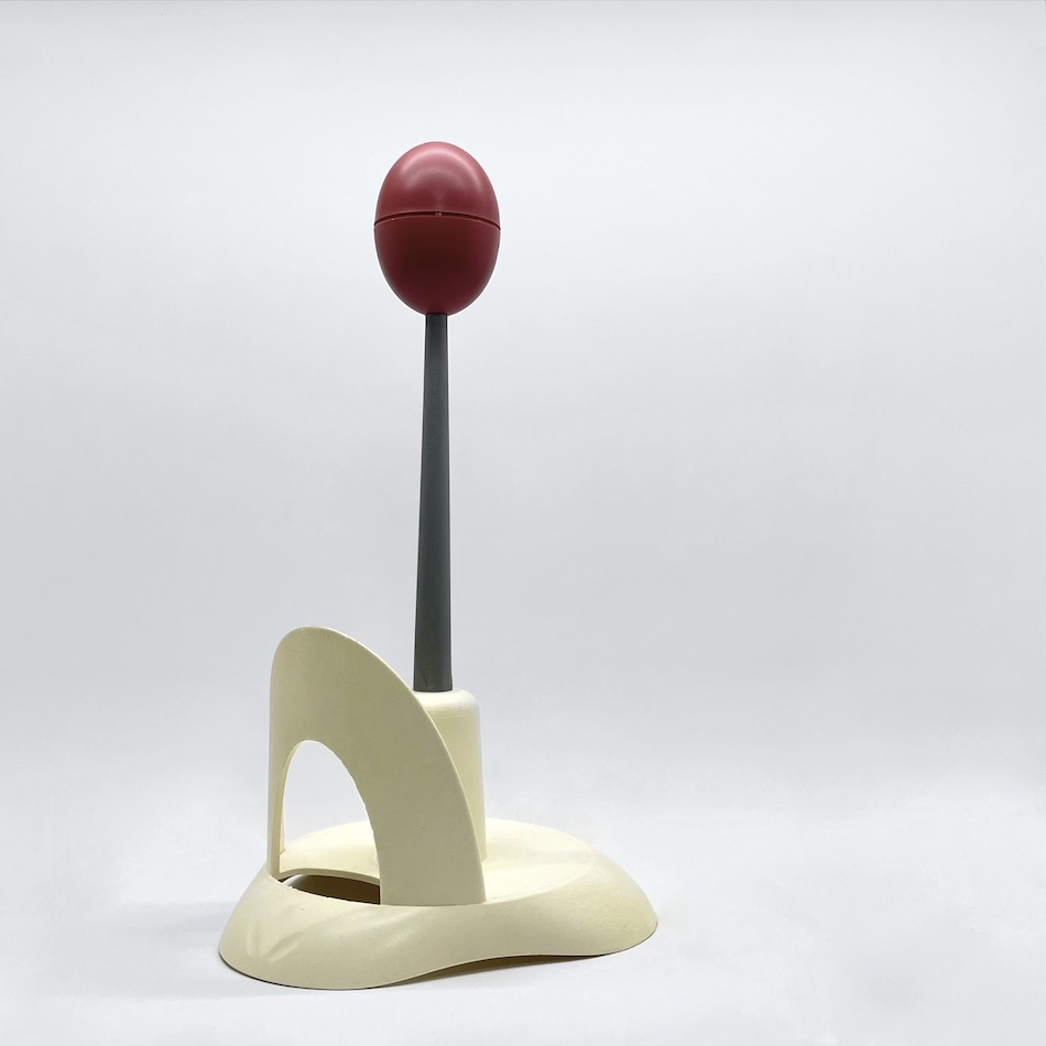 カーブを描くベースから伸びる支柱、そしてトップの赤い卵型がアクセントとなり、蕾を携えた花の様なシルエットは日用品にありながらオブジェの様な雰囲気も持つイタリアンビンテージプロダクトです。