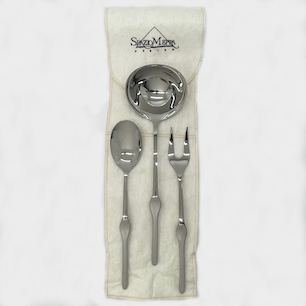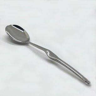 イタリアの建築、デザイン界の巨匠 “Angelo Mangiarotti / アンジェロ・マンジャロッティ”がデザインした、テーブルウェアブランド”MEPRA / メプラ”社のカトラリー”Ergonomica / エルゴノミカ” 。レードル、サービングスプーン&フォークの3ピースセット。