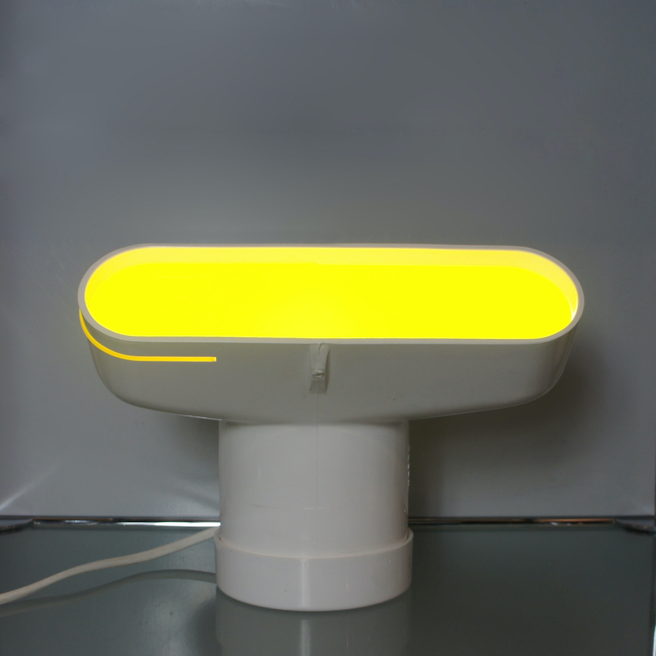 バニラホワイトのジョイントパーツ”iplex Junction”を連結、イエローのアクリルを嵌め込み電装を加えた”SUPER STUDIO”の照明を彷彿させるデザイン。<br>