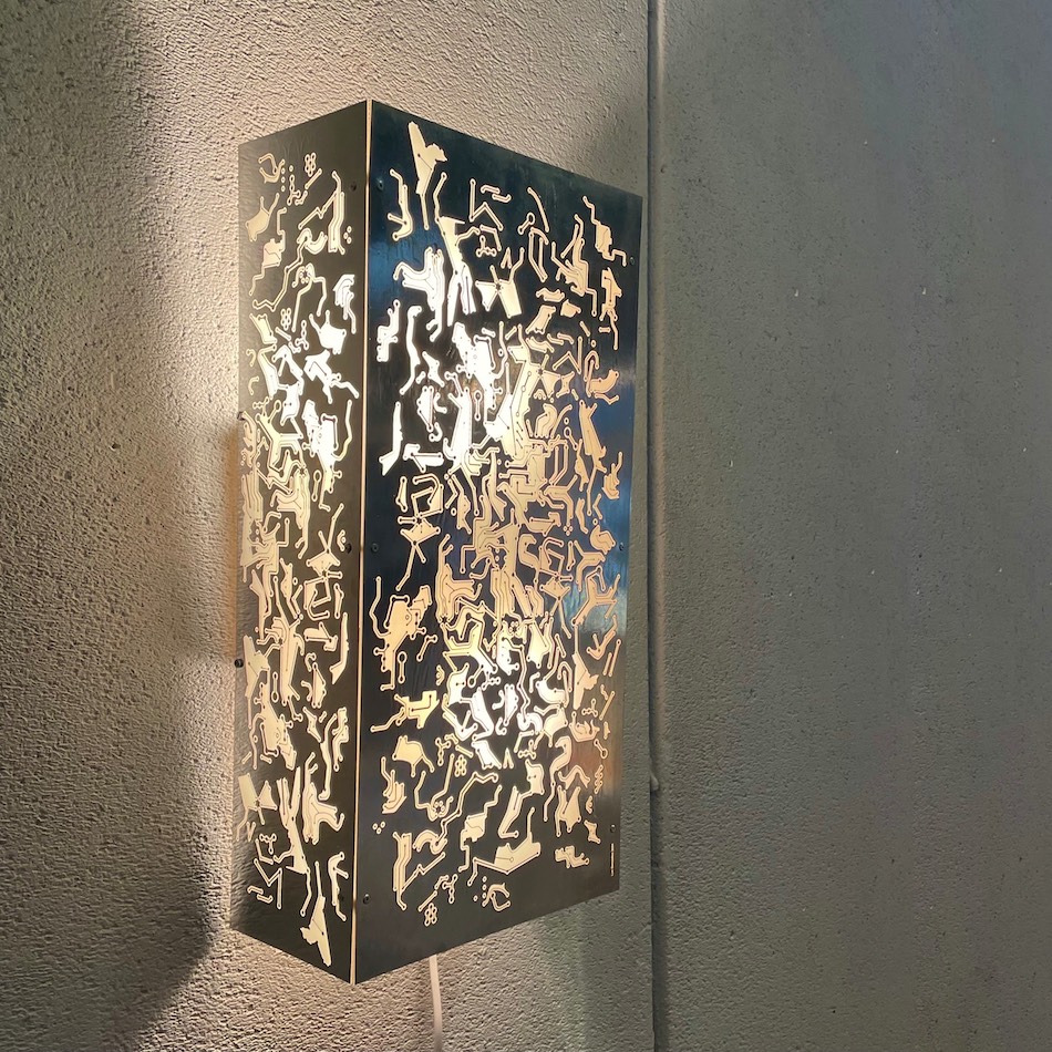 2004年にフランス人デザイナー “Luc Gensollen / リュック・ゲンソーレン” が電子プリント基板のシェードを持つサイバーなイメージのウォールランプ「INNER LIGHT / Square」。