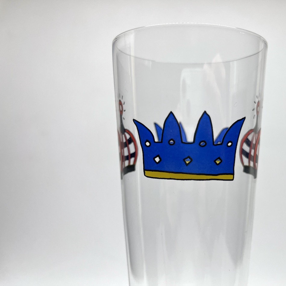 アイテムは1996年、”Nathalie du Pasquier/ ナタリー・ドゥ・パスキエ” デザインのビアグラス。