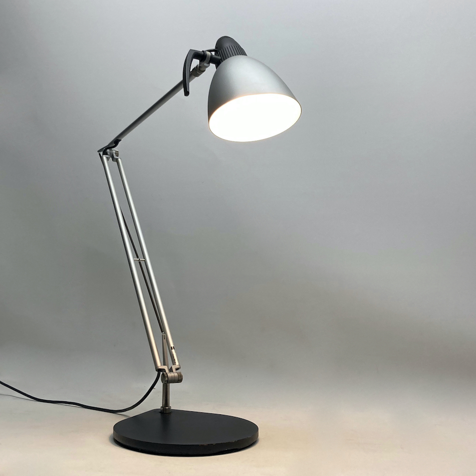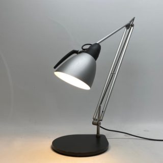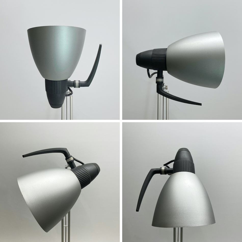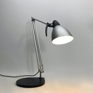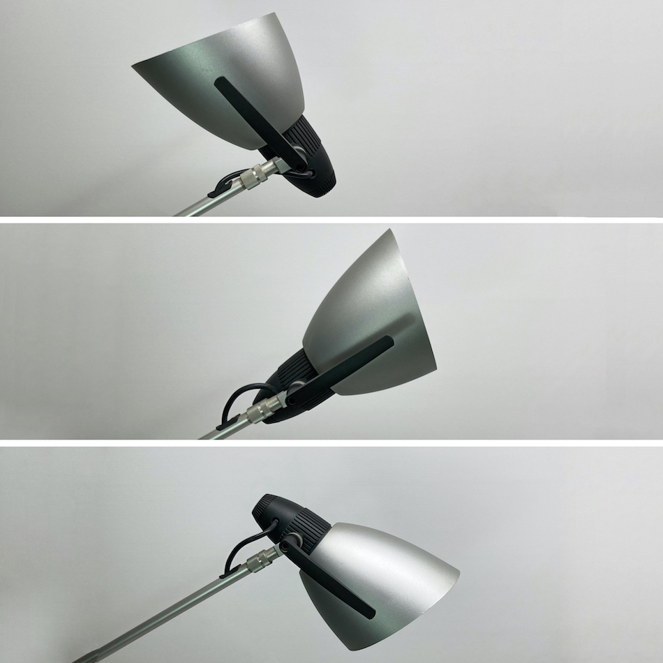 同社が作業空間用照明の開発からスタートした初期に誕生させた”Hannes Wettstein / ハンス・ウェットシュタイン”の名作デザイン”SNODO”の設計を踏襲。長い2本の下部アームと短めの1本の上部アームによって軽快且つ高さのある広範囲な可動域を確保、シェード横に突き出た鉤型ハンドルがポジション移動を容易にしています。