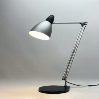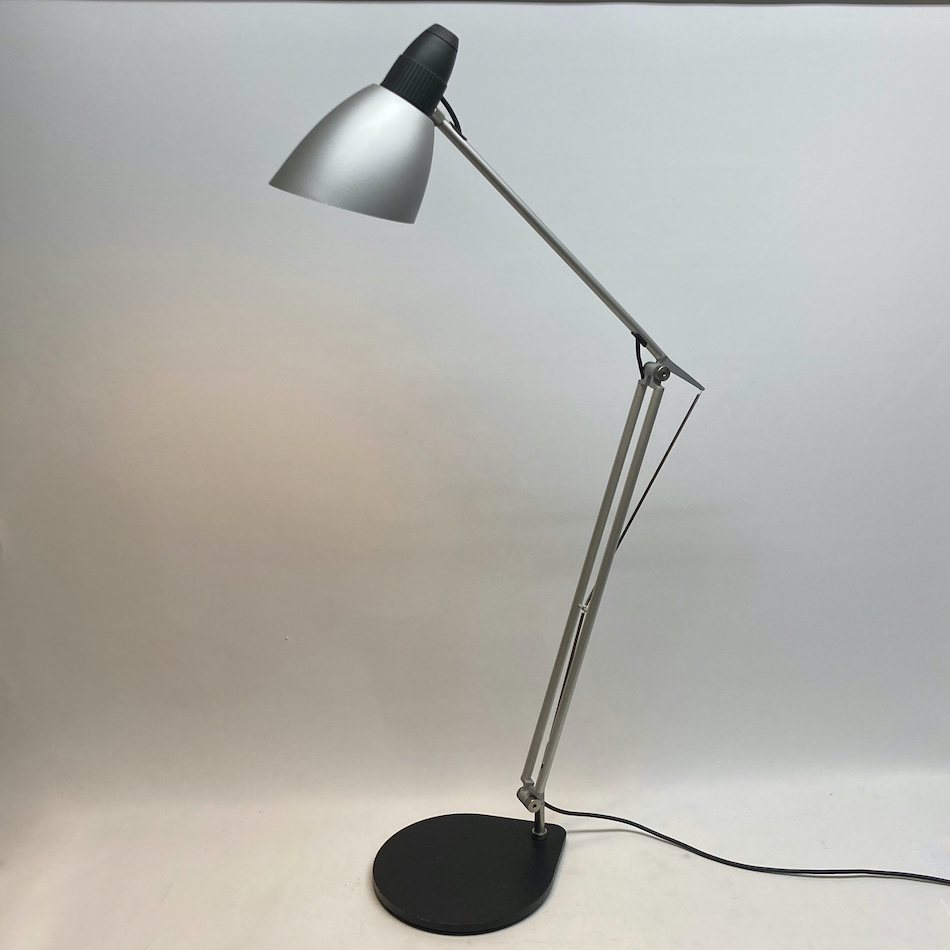 軽量なアルミのチューブアームとドームシェードのシルバー、ブラックのスチールウェイトベースと樹脂製のシェードキャッチ部というシンプル且つスタンダードなルックス。