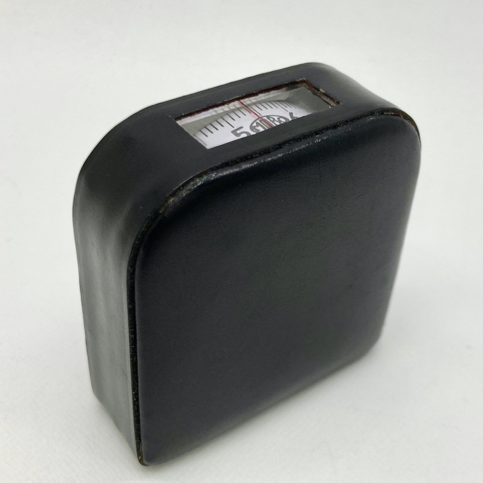 同社のメタルケースのヴィンテージは今も人気のあるアイテムですが、入荷品は70年代の内部機構と同様のパーツを使用しながらもケースが上質な黒の本革、特徴的な内寸計測値を表示する目盛も上部に装備。